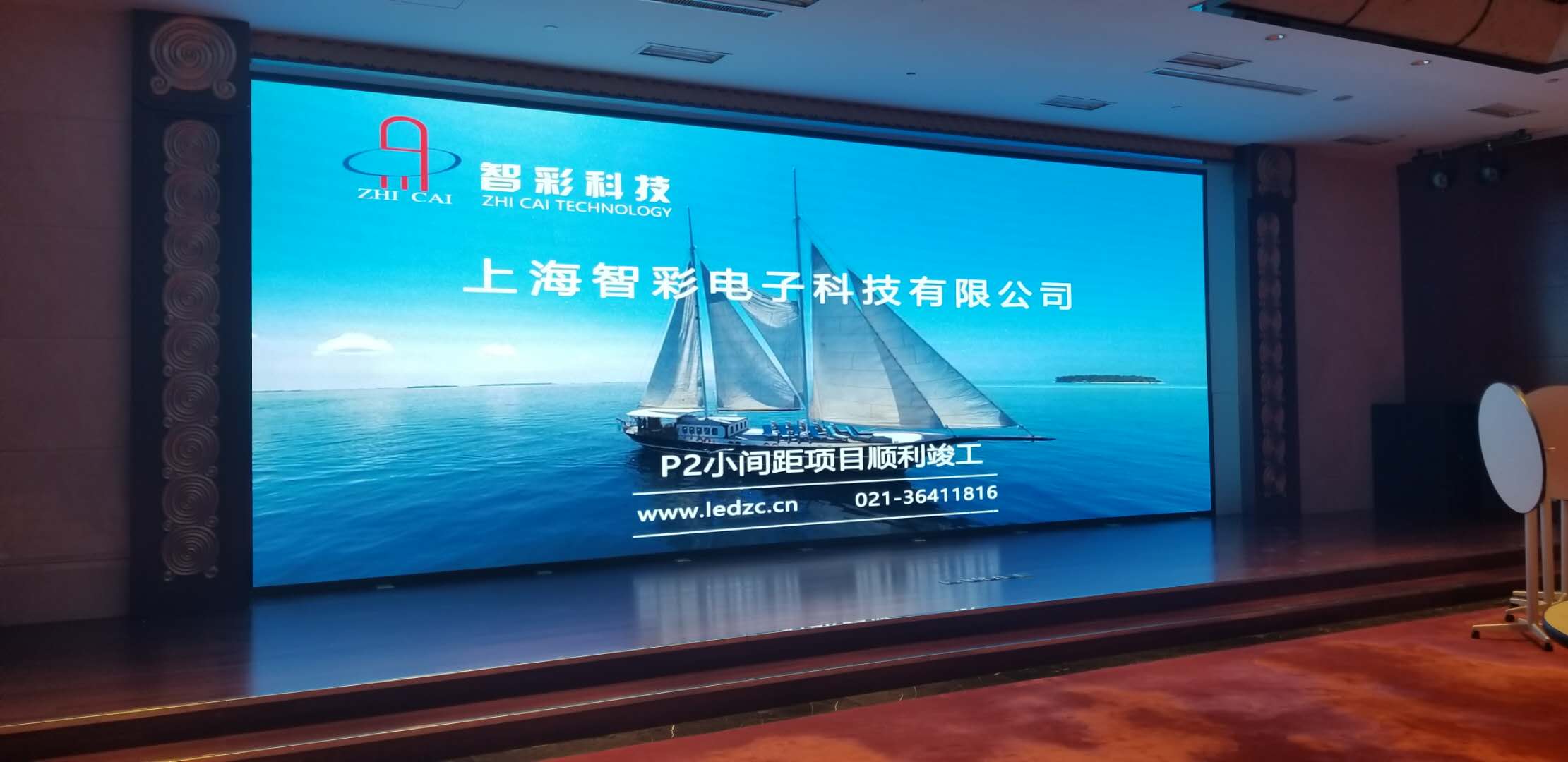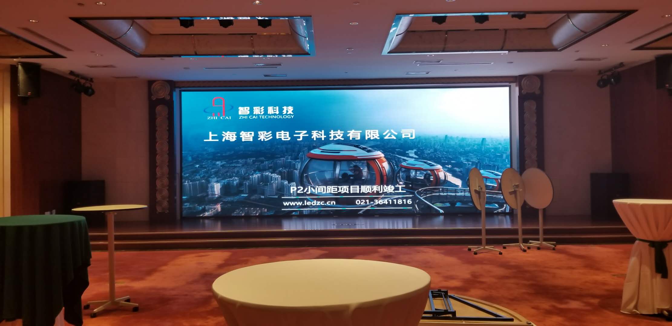 北上海大酒店P2.5室內小間距LED顯示屏由智彩科技承制